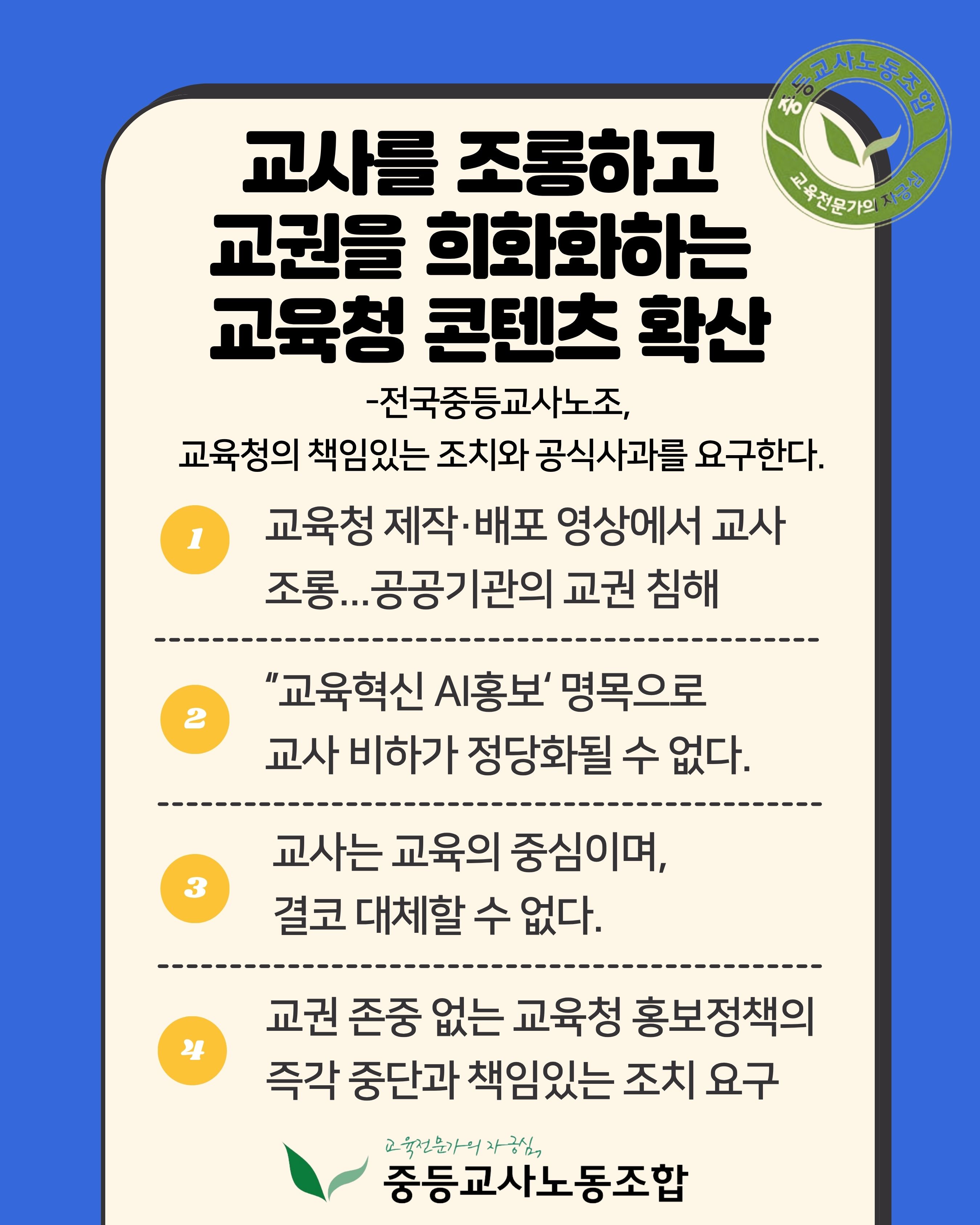 [성명] 경기도교육청의 하이러닝 홍보 유튜브 영상에 대한 중등교사노조의 입장