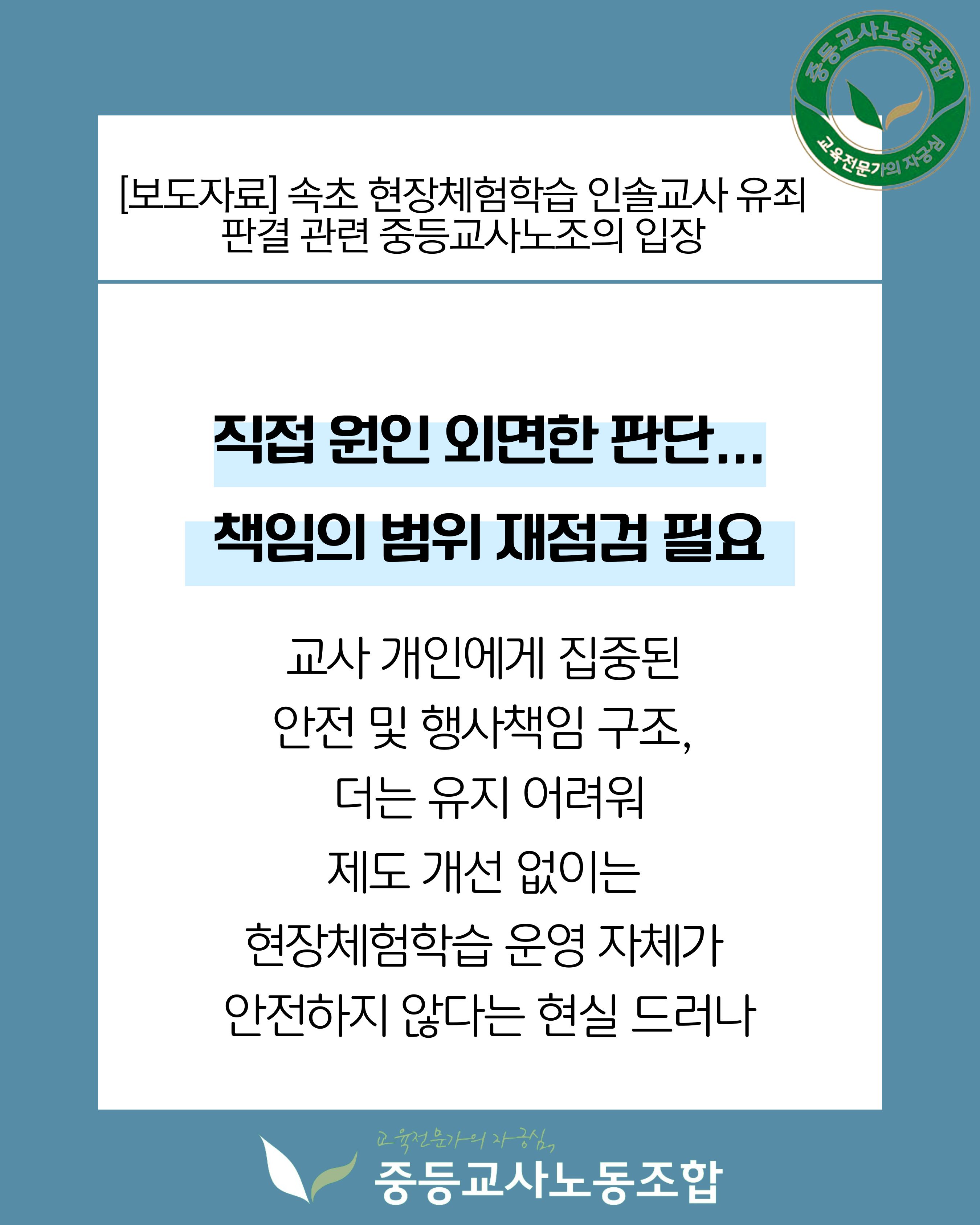 [보도자료] 속초 현장체험학습 인솔교사 유죄 판결 관련 중등교사노조의 입장